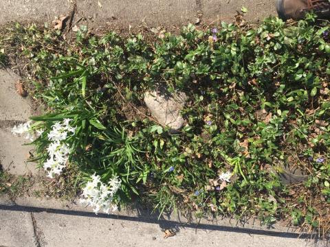 Some local gardeners eschew a surfeit of zinnias and choose a range of plants that will flower or look good all year. Here are a few examples of this spring’s parkway planting from the Oakwood and Glencairn neighborhoods: