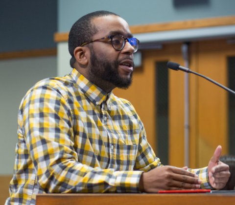 Above: DaMar Boyd speaks to Council about the income tax revenue (photo by Raymond Holt)