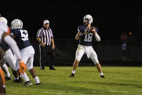 East Lansing senior quarterback Sam Busch (18) suffered a concussion in last week's 21-2 victory over DeWitt, and he is unlikely to start this week against Holt.