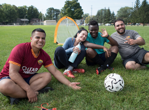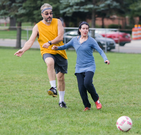 Hanifi is part of East Lansing’s Sunday Coed Friendly Soccer group that meets once a week for informal scrimmages. Members play for pure love of the game on the field behind MacDonald Middle School in the spring and summer, or in Demonstration Hall at Michigan State University when the season turns. Players range in age, profession and gender, with some—like Hanifi—having been involved since the weekly pickup soccer game started nearly 20 years ago.