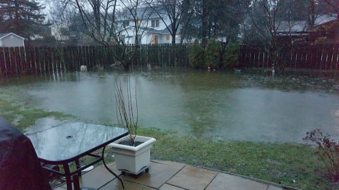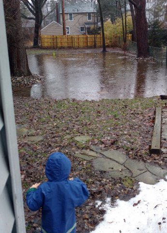 Earlier this week, as residents were reporting lakes forming on their properties, ELi asked readers to share photos of water in their yards. Here’s a photo from Joan Ilardo of her yard in Shaw Estates: