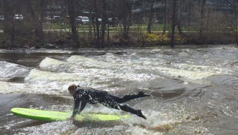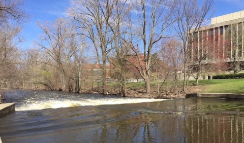 Surfing the Red Cedar River, however, might also become a thing of the past, because removing the underwater dam, or weir, likely would reduce the possibility of heavy rains leading to a standing wave. Unusually high levels of water combined with the small rapids across from the Administration Building can cause the water to curl back towards upstream.