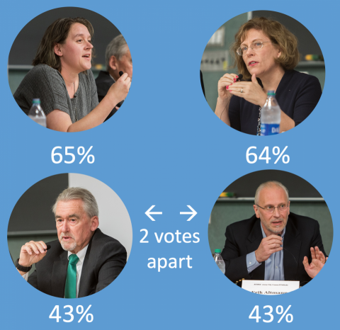 Based on polling, Grebner had expected Gregg to come in first, Altmann to come in second, and Meadows and Babcock to be vying for the third seat.