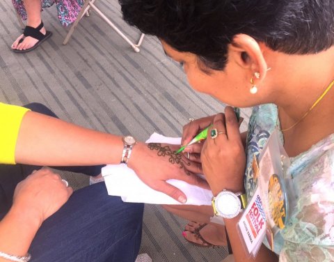 Above: An artist applies henna to an attendee's hand at the 2015 Great Lakes Folk Festival.