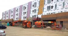 Image: The new commercial and apartment building at Trowbridge Plaza, built with TIF support.
