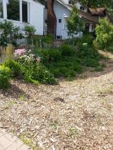 Rain garden located outside of Mid-MEAC, Mid-Michigan Environmental Action Council, located in East Lansing off Grove Street.