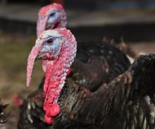 The fleshy bit hanging over the bill of this tom is called a snood. The fleshy bit hanging below the chin is a wattle. Image courtesy MSU Extension.