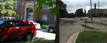 Image: The Bailey School building (left) and a parking lot (right), two of many City-owned properties that could be impacted by the land sale Charter amendment.