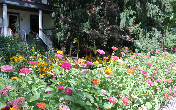 When we moved to our house in Oakwood, a downtown neighborhood of East Lansing, in 1998, our parkway was nothing but weeds. Rather than replanting with something he'd have to mow, my mate and ELi co-contributor, Aron Sousa, decided to plant zinnias. It worked so well that now the neighbors have come to see the zinnias as our annual obligation. We've had people ask to take some for memorial services, and we've even caught a woman stealing our zinnias out of her car window. (Don't try it. I have a rake and I'm prepared to use it.)